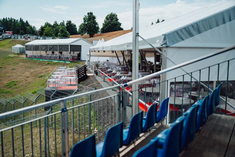 Přijeďte autem až k VIP zóně a usedněte na velkorysou terasu s nejlepším výhledem, který na Masarykově okruhu najdete.